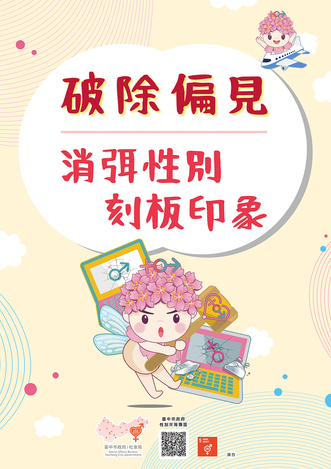 希朵為本市的性別平等吉祥物,以「消除對婦女一切形式歧視公約(CEDAW)」命名,為消除性別歧視、倡導性別平等而生,期待性平在臺中綻放希望的花朵,並以本市市花山櫻花設計領巾與頭飾,展現百花綻開的姿態,頭頂與魔法棒設計象徵性別平等的天秤,手持的法棒用來打破性別歧視與刻板印象,邀請大家一起宣傳性別平等! 歡迎大家與希朵一同推廣性別平等~
