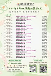 轉知本市家庭教育中心115年3月份活動一覽表供參